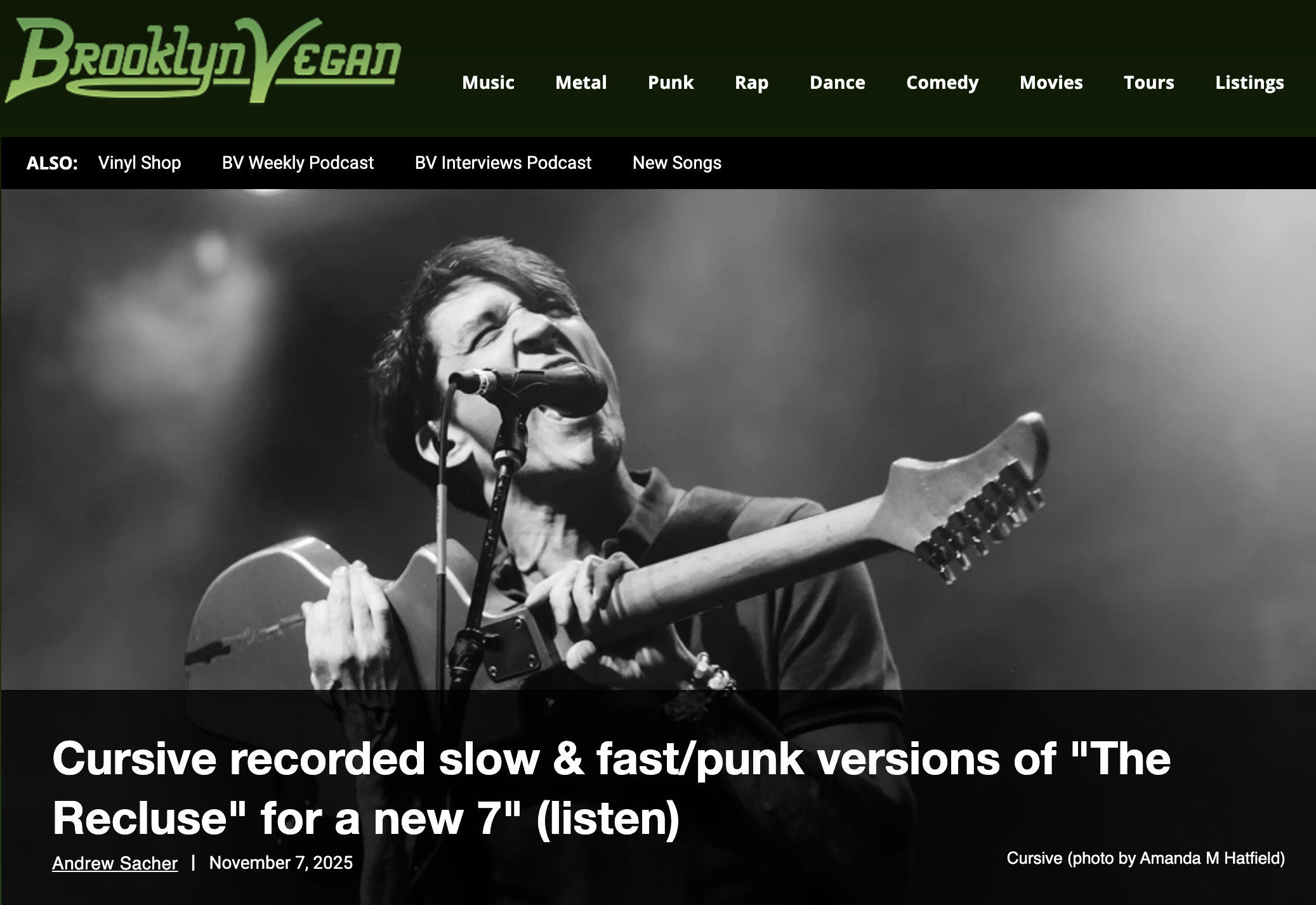 Cursive 7" w/ Noise Real Records - Brooklyn Vegan Premier 21 December 2025